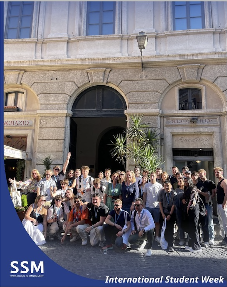 | These awards honor two Italian American icons whose leadership and innovation shaped modern business: The Amadeo Peter Giannini BBA Scholarship: Celebrating the founder of Bank of America and his enduring legacy of opportunity and entrepreneurship. The Lee Iacocca MBA Scholarship: Honoring the legendary automotive leader known for his vision, resilience, and transformative leadership. | SSM Students exploring Rome during International Students Week. Photo courtesy of the Swiss School of Management. |